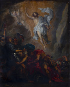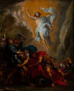 Da quanto emerso dagli studi, si legge che “van Dyck abbia realizzato la sua Resurrezione poco dopo il 1630 ad Anversa, città in cui Willem van Herp trascorse tutta la vita e da dove esportò molte opere verso vari paesi europei, soprattutto in Spagna e Gran Bretagna, spesso prediligendo il supporto di rame in ragione della sua facile trasportabilità. Il rame esalta inoltre la brillantezza dei colori, come mostrano i bianchi luminosi e il rosso acceso della Resurrezione di van Herp. Con pennellate vibranti Van Herp dipinge Cristo che si libra in cielo, accompagnato dal vessillo che svolazza intorno a una croce sottile, a indicare la sua vittoria sulla morte, tra il timore e lo stupore di alcuni soldati, letteralmente a bocca aperta, e lo straniamento di altri, addormentati.