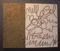 Senza titolo, 2008alla produzione recente 'all'opera non è più affidata alcuna istanza sociale, nè svolge compiti di rappresentanza del tempo, nè ancora vuole fondare un luogo, ma piuttosto diventa consueta abitudine, attività quotidiana, esercizio estetico domestico'. Il segno e la geometria rimangono elementi distintivi dello stile dell'artista; un'analisi dello spazio che muove sulla tela, non per forza in grandi dimensioni, ma anche su un formato ristretto come le opere firmate 2008 nella mostra in corso.