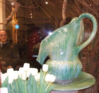 Monti, l'epicureo – In mostra espone i suoi piatti, realizzati di recente in collaborazione con la premiata ditta Robustelli alle Fornaci Ibis di Cunardo; i suoi grandi vasi antropomorfi e una serie di una decina di disegni acquerellati di piccoli vasi. La prima idea, antecedente lo sviluppo tridimensionale nel gres. Il disegno, altra dimensione centrale nell'opera di Monti, vero marchio della sua inventiva. "L'arte…mi permette di srolotare quotidianamente le mie nevrosi organiche". Che lingua, il dilettante.