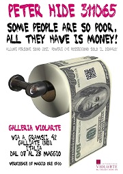 "Ho scelto diversi anni fa il nome d'arte PETER HIDE 311065 (mi chiamo Franco Crugnola) derivandolo dall'ossimoro tra PETER PAN (noto sempiterno bambino buono) e Mr. HYDE (la parte brutale e "cattiva" del Dottor Jekyll). I due nomi hanno la stessa notorietà e rappresentano il primo il bene, l'innocenza, la purezza e la bellezza, il secondo il male, la cruenta e la forza bruta. Come nel romanzo di R. Stevenson ove la lotta impari che oppone il bene e il male tra Jekyll a Hyde, mette in gioco temi di grande suggestione, la metamorfosi e il doppio, lo specchio e il sosia, fino a toccare le corde più segrete e inconfessate dell'animo umano, cosi nei miei lavori cerco di ricreare il male che può prevaricarci attraverso un'immagine allegra e scanzonata. Cerco di rappresentare attraverso immagini che fanno parte del nostro vivere quotidiano, ed apparentemente concilianti, gli opposti che esse stesse rappresentano, e di aprire nella mente dello spettatore che vorrà approfondirne la lettura, una porta immaginaria verso il pericolo della sopraffazione dell'effimero. In una società contemporanea, dove tutto è misurabile dal denaro, e dove spesso si ha la sensazione che non solo il materiale ne sia soggiogato, ma anche l'immateriale, la parte più unica che contraddistingue l'individuo, il denaro, ha per me il valore simbolico di rappresentare il pericolo di una vasta decadenza culturale, e per opposto il degrado che la sua mancanza ne produce. Non voglio rappresentare graficamente la povertà, la violenza fisica o psicologica, il degrado ambientale, ma neppure la bellezza generata solo ed unicamente dalla manipolazione della ricchezza, la sensazione di potenza quasi divina ed il sogno di felicità, ma voglio far riflettere su che cosa genera ciò per cui tutti noi ci affanniamo, viviamo e a volte moriamo: Il denaro."SOME PEOPLE ARE SO POOR,