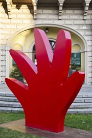 La scultura, già disponibile da aprile 2014, è una splendida mano aperta rossa.