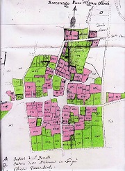 869 erano la residenza nobiliare, i mappali 824, 873, 872, 876 e 877 i rustici, i mappali 286, 28(3?), 284 e 309 il grande parco. Successivamente la proprietà viene frazionata e la parte occidentale del palazzo (che diventerà la residenza dell’ing Italo Azzimonti – uno dei maggiorenti del borgo e progettista della chiesa nuova dei Santi Pietro e Paolo – poi oratorio parrocchiale, poi proprietà comunale) viene profondamente ristrutturata, gran parte dei rustici viene demolita per creare una grande colata di asfalto su cui sono solitamente parcheggiate tre o quattro auto, ma la parte orientale, di proprietà privata, ha mantenuto il caratteristico accesso privato (attuale vicolo Montanara), i corpi di fabbrica disposti a C intorno al cortile interno, la torretta all’angolo nord-est ed il giardino, che conserva ancora, unico sopravvissuto, il disegno tipicamente settecentesco, analogo di quelli scomparsi di palazzo Marliani a Busto Arsizio, e di palazzo Rasini a Borsano; è probabile che conservi ancora degli ambienti dell’epoca.