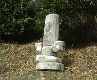 Resistono nel trambusto del magazzino all'aperto anche due opere d'arte che, sebbene non firmate, lasciano intravedere il segno dell'artista. Statue in cui la roccia è potentemente sbozzata e resa fertile dalla traccia sulla superficie, in cui entra il reticolo dell'uomo che disegna una rete di linee che avvolgono il masso e ne umanizzano l'aspetto di pura pietra. Una di esse è un grande pezzo unico, squadrato e lavorato in superficie con coppelle che richiamano le forme primitive dei massi erratici e una retinatura di segni di scalpello che la avvolgono come una rete di sentieri esplorati e improvvisati sulla dura superficie della pietra.