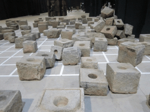 mpio “Mortar line” (1966) composta da una doppia fila di mattoni di sterco che si snoda sinuosamente sul pavimento con una scanalatura centrale riempita di kumkum, un pigmento rosso utilizzato in India per riti spirituali.
