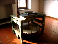Il laboratorio – Si parte dal pian terreno, dove un tornio e altri strumenti da lavoro, provenienti dai laboratori della Scuola Beato Angelico, testimoniano la conoscenza del reale, che avviene nel processo creativo, e dell'artista-artigiano che, illuminato, si mette all'opera. La presenza in questa sala di alcune immagini e di testi di artisti del Novecento convertiti al cristianesimo, come Arturo Martini, William Congdon, Henri Matisse, Antoni Gaudì, rivela che anche in tempi moderni il rapporto tra creatività e Creatore è stato vissuto a pieno.