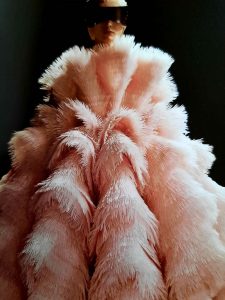 In omaggio alla splendida attrice sopra citata abbiamo scelto il rosa (Heavenly Pink Pantone 12-1305) che negli anni Cinquanta del secolo breve era considerato un colore infantile e iperfemminile. Nel nuovo millennio Sarah Burton direttore creativo di Alexander McQueen, lo ha utilizzato per creazioni surrealiste e fantascientifiche. L’abito “Pink Fluff” richiama il fascino esercitato dalle realtà naturali e dalla suggestione surreale ed esprime la poetica di Burton. Il suo “futurismo soft” trasforma la modella che lo indossa in una sorta di eroina fantascientifica. Il legame tra moda, arte e cultura è strettissimo ed in taluni abiti particolarmente evidente. Lo spazio della nostra rubrica non ci consente di dilungarci oltre, ma torneremo presto su questo affascinante argomento per raccontare in dettaglio oltre un secolo di colore nella moda e le sue affascinanti contaminazioni.