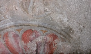 aureaole o i cartigli, e -una particolarità- anche degli incisioni fatte nell'intonaci a spolvero, ovvero invece di spolverare il disegno con il pigmento è stato poggiato il cartone ed inciso direttamente sull'intonaco, quindi si notato una serie di puntinature".