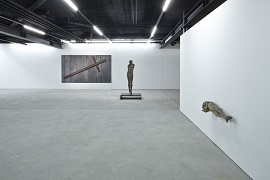 Ecco allora il Lying Man (Uomo sdraiato) della scultrice tedesca Paloma Varga Weisz del 2014, pur realizzato a cinque secoli di distanza, dialoga idealmente con il martirio di San Sebastiano, nudo e trafitto da frecce. Effige della sofferenza del martire, il San Sebastiano del Carracci, eppure così vicino al nostro presente nella sinuosa composizione della figura del Santo, trova sorprendente corrispondenza nella scultura della Weisz: una figura maschile in legno grezzo, supina, in scala al vero, abbandonata su una ruvida coperta. Un'immagine che richiama tragicamente il destino di tanti migranti e profughi, un'icona della sofferenza che appartiene tristemente alla cronaca del nostro nuovo mondo globale.Il percorso si chiude con tre artisti del presente: Adrian Paci, Jannis Kounellis e Roberto Ciaccio.