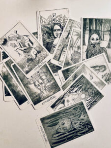 La personale in apertura dal 19 dicembre nelle sale di Manifiesto Blanco è un progetto al quale l’artista si dedica ormai da diverso tempo: le carte dei Tarocchi realizzate in acquaforte. Come lei molti altri artisti, a partire dal periodo tardogotico, hanno subito e continuano a subire il fascino di questo soggetto che risveglia curiosità ed attenzione per la varietà di simboli e significati rappresentati. Dall’esoterismo fino alla moderna spiritualità, passando per la psicologia e lo storytelling, i Tarocchi hanno da sempre interessato in modo trasversale molteplici discipline, come arte, cinema, moda e musica.