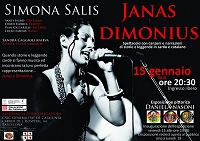 "'Janas e Dimonius' rappresenta una suggestiva unione tra canto, teatro e arte pittorica. Un viaggio ispirato a leggende e racconti sardi chiamati "is contus de foghile", i racconti del focolare che si tramandano dal passato, raccontati dagli avi e dagli anziani di oggi, seduti attorno a un focolare e giunti fino a noi; storie per tenere buoni i più piccoli e per dare loro, attraverso i racconti, importanti insegnamenti di vita. Il progetto ‘Janas e dimonius' è una "voce senza tempo", capace di trarre dalle antiche leggende insegnamenti "senza tempo", attuali e utili per una convivenza saggia e pacifica. Storie antiche e moderne vengono raccontate attraverso il canto e la musica di Simona Salis, a cui si unisce la narrazione dell'attrice catalana Sandra Caggioli Anieva, e l'esposizione di 21 mie opere pittoriche. Lo spettacolo propone una travolgente esperienza artistica, dove la musica sposa il teatro e si incontra con la pittura, in un'opera musicale moderna a tutto tondo.