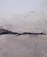 Con estrema sintesi di segno e colore, Giulia Scandolara delinea in "Deserto" la naturale conformità di quel minimale luogo.