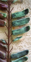Arte e natura – La mostra di Sara Russo è un omaggio ad una terra per lo più ospitale, della quale Sara si nutre per le forme naturali delle sue opere prevalentemente realizzate con la tecnica "Raku" di antichissima tradizione giapponese e che nel nome stesso racchiude la filosofia a cui s'ispira, ossia "gioire del piacere di creare e vivere in armonia con gli uomini e le cose. La bellezza naturale dei fiori, che trovano dimora spontanea nei vasi, che si mimetizzano nelle forme intrecciate di rami, che invece d'essere di legno, sono nella terracotta lavorata, secondo i dettami della tecnica giapponese rendono suggestiva e mimetica con l'ambientazione naturale, tra orchidee phalaenopsis ed amarillis, l'esposizione di Sara.
