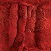 Un'altra operaSperimentare – "La tecnica che uso ora è un pò lunga" confessa l'artista "utilizzo carta catramata, ovatta sintetica bianca, lana che combino in diversi passaggi e arrivo ad assemblare anche opere lunghe 5 metri".