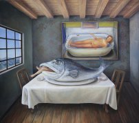 Le fanciulle eteree e autobiografiche della Del Monte popolano invece contesti surreali e assurdi, come ne "Il predatore più grande", olio su tela che riproduce una stanza con una tavola imbandita dove troneggia un enorme pesce (che ricorda vagamente le donne-pesce di Magritte) dalla cui bocca spuntano due gambe femminili.