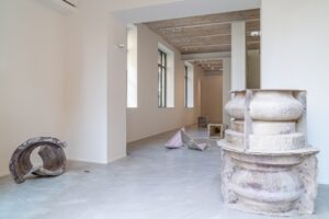 Strutturata in tre distinti spazi, la mostra vede al piano terra un insieme di calchi originali provenienti dall’archivio dell’artista, quali elementi preludio al proseguo dell’esposizione.