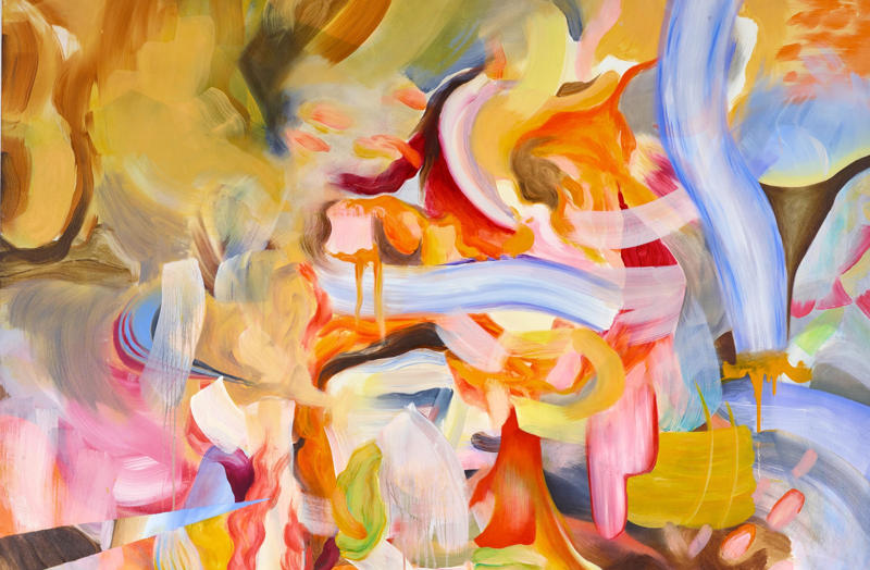 “Nella mia pratica – precisa l’artista – esploro idee sulla memoria e sul tempo. Vedo i miei dipinti come spazi psicologici o paesaggi di immaginazione e il processo di pittura come una conversazione che avviene tra il mio inconscio, i miei ricordi e il materiale della pittura. Centrale nel mio processo è la ripetizione. Ripeto segni, immagini e pennellate dei dipinti precedenti in ogni nuovo dipinto successivo. Mi interessa l’idea che ogni volta che ripeto un segno questo cambia, proprio come ogni volta che richiami un ricordo cambia. Anche la creazione di segni accidentali che si verificano quando dipingo è una parte importante del mio processo attraverso il quale elementi di novità o sorpresa possono entrare nell’opera. Questi segni non pianificati trovano un’associazione con l’inconscio e portano il lavoro in una nuova direzione sia visivamente che emotivamente. I dipinti iniziano da una posizione e finiscono in un posto nuovo e inaspettato, ma in un posto nuovo che ha una risonanza con me. Sento che spesso rigurgitano nuovi ricordi. Consentire al pensiero associativo di svolgere un ruolo, spinge avanti il dipinto e crea nuove idee per lavori successivi. Attraverso la ripetizione dei segni pittorici da un dipinto all’altro, creo una sorta di genealogia dei segni; che le connessioni possono essere portate alla luce e scavate dal lavoro. I miei dipinti sono diventati una sorta di costruzione del mondo (“fictionscaping”) a partire dal mio archivio di segni che cresce ad ogni utilizzo. In questo modo vedo la pittura come depositaria del tempo e della memoria. Man mano che il lavoro procede, i confini tra memoria e immaginazione, passato e presente si confondono e lasciano il posto a qualcosa di nuovo. I segni cambiano e si sviluppano per essere riutilizzati nei dipinti futuri, spingendo così costantemente il lavoro in avanti e guardando anche al passato”.