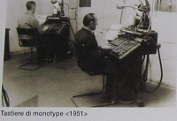 Monotype, 1951Esperienza trentennale – L' allestimento del museo è stato curato da Otello Geddo, per lungo tempo collaboratore del prof. Locatelli presso la casa editrice De Agostini che ha donato il materiale didattico. Dieci annii trascorsi al Club del Libro, dove erano realizzate essenzialmente opere classiche, poi venti anni presso la casa editrice De Agostini. responsabile della redazione letteraria, il prof. Locatelli ha amato molto il libro, la sua curatela: dalla ideazione, alla progettazione, alla realizzazione materiale, espressione dell'arte tipografica. La ricchezza degli incontri e dei rapporti umani, che man mano s'instauravano intorno alla realizzazione di una enciclopedia o di un'opera letteraria erano occasioni straordinarie per conoscere professionisti di diversi settori, dall'arte alla geografia, dall'architettura alla storia, dalla poesia al teatro. Una parentesi di vita assai ampia, che poi è proseguita con l'insegnamento accademico della storia della letteratura francese e del teatro e che ora ha donato alla città di Tradate un altro prezioso tassello del sapere: il museo dell'arte tipografica.