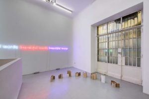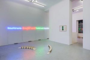 Milano – Titolo liquido per opere solide. La doppia personale “Same River Twice” di Vlatka Horvat e Tim Etchells in corso da Renata Fabbri, testimonia la lunga collaborazione tra i due artisti, uniti anche nella vita e vede le sculture e le opere su carta di Vlatka Hovart (Croazia 1974 vive e lavora a Londra) confrontarsi con le installazioni al neon di Tim Etchells ( 1962, Regno Unito, vive e lavora a Londra e a Sheffield).