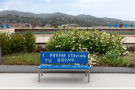“Do you Want Us here or Not” fa parte di un progetto iniziato da Finnegan Shannon nel 2018, ora concretizzatosi negli spazi di Pista 500 attraverso una serie di panchine che invitano le persone a sedersi seguendo quanto scritto a mano sugli schienali in modo da permettere di contemplare quanto sta loro attorno.