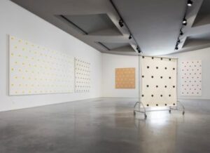 L’esaustivo titolo della mostra definisce a pieno la sua azione pittorica cadenzata da una gestualità meditata e governata da rigore matematico.