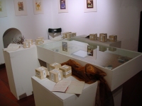 Installazione di Annamaria De Simoneaccompagnando l'osservatore in un percorso di parole e immagini tenuto insieme da un filo vero, allusione al filo del discorso, o meglio al fil rouge della vita dell'uomo nell'universo.
