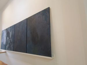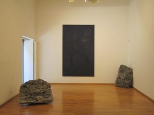 I grumi, posti accanto a quadri di grande formato percorsi da tonalità blu in continuo movimento, aprono a un dialogo intimo e profondo tra l’oggettività della materia e la spiritualità della pittura, quale ammissione nei confronti di una solida concretezza a fronte di una introspezione tormentata quanto affascinante.