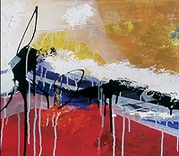 Maddalena esprime una sofferenza interiore che libera sulla tela attraverso spatolate di opprimenti vernici nere, bagnate da trasparenti lacrime colanti.