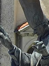 La grande statua bronzea di Paolo VI, opera dello scultore gemoniese Floriano Bodini, dal 1986 accoglie i pellegrini al termine della Via Sacra sulla piazzetta che precede l’ingresso in santuario.