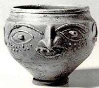 Vasi portafortuna? Un posto particolare è occupato dai vasi cosiddetti antropoprosopi, cioè che sono decorati con la figura di un viso umano, un po' grottesco, addirittura a volte con un buco alle orecchie per orecchini metallici. Solitamente considerati vasi funerari, sono stati ritrovati anche in contesti abitativi. Probabilmente avevano una valore apotropaico e godettero, per questo, di una notevole fortuna.
