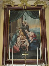 Nella cappella laterale sinistra si trova una tela che raffigura la Sacra Famiglia con Santa Elisabetta e San Giovanni Battista. Il gruppo è rappresentato in primo piano sulla nuda terra sotto un tendone verde che sembra essere stato aperto per l'occasione per