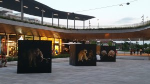 , direttore del magazine National Geographic Italia, si snoda in un percorso allestito sia all’interno, sia all’esterno del distretto commerciale. Le immagini che si incontrano sono di forte impatto anche grazie alla tecnica utilizzata dal fotografo: ogni animale è protagonista e ritratto su fondo bianco o nero. Un contrasto che evidenzia al meglio le caratteristiche morfologiche d