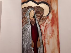 Con questa esposizione l’artista abbandona il suo lato classico da iconografa e lascia spazio alla creatività con tecniche varie su diversi materiali nell’ambito dell’arte contemporanea.