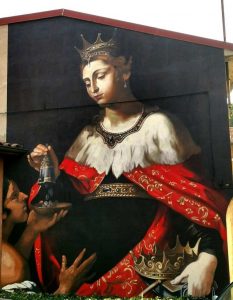 Da diversi anni il pittore e street artist varesino Andrea Ravo Mattoni ha sviluppato il suo progetto «Recupero del classicismo nel contemporaneo» che l’ha reso famoso in tutto il mondo. Qual è il suo obiettivo? In un’intervista rilasciata nel 2016 al blog Travel on Art lo stesso Ravo spiega: «voglio recuperare il classicismo insito nella cultura italiana, rendendo l’arte classica un’arte sociale. Con le bombolette spray, che sono spesso guardate con sospetto e pregiudizio, ho riprodotto l’effetto dei colori ad olio su tela. Il mio ruolo è un po’ quello di tramite perché non intervengo con modifiche sulle opere che riproduco». L’artista porta avanti, quindi, una tradizione antica, quella della copia, rileggendola in chiave contemporanea attraverso l’uso di una tecnica moderna e la scelta di macro dimensioni. E nel nostro territorio si potrebbe quasi andare a caccia delle opere di Ravo. Se ne trovano esempi a Varese (ricordiamo il dipinto «Allegoria della Giustizia e della Pace» dell’artista settecentesco Corrado Giaquinto riprodotto nel Tribunale), ad Angera (con la meravigliosa Pinacoteca a cielo aperto), a Gavirate (dove campeggia «L’ultimo bacio di Romeo e Giulietta» di Hayez). Nelle scelte delle opere da proporre Ravo valuta di volta in volta la correlazione con il territorio. Questo aspetto è evidente nel lavoro del pittore a Somma Lombardo.