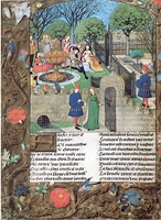 Roman de la Rose – L'intera mitologia, molto religiosa, del locus amoenus, per sua stessa radice etimologica così vicino al concetto di amore. Da qui il titolo della mostra che richiama, appunto il Paradiso, ma anche simbologie pagane, come il riferimento ad Afrodite, la divinità dell'amorecoisì come del 'Bell'Ordine' la cui presenza è evocata dal frutto dell'arancia. Sensazioni, quelle indotte dal percorso, che riportano ai sublimi testi miniati del Roman de la Rose (giardino maschile) e della Citè des Dames (giardino femminile), ai ragazzi e poi alle ragazze del Decameron, ai testi di Pier de' Crescenti sui lavori agricoli destinati ai maschi e a quelli, non pochi, riservati alle donne, alle piante maschili e a quelle femminili.