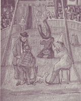 'Il circo', olio su cartone"Era uno che sapeva dipingere – ricorda Luigi Piatti – negli ultimi trent'anni però non ho più avuto occasione di incontrarlo o di vedere i suoi lavori". In un suo testo pubblicato su Tracce (1997), Vedani risulta tra i partecipanti della 'Prima mostra Provinciale' promossa dalla Società storico-artistica Cesare da Sesto nel 1950. La giuria in tale occasione assegna un premio ad honorem a, con menzione speciale, a Gino Moro; il primo premio ex auequo a Uberto Vedani per il quadro Il circo e a Leo Spaventa Filippi per il quadro Il mare a Cupramarittima.