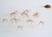 L'artista Christiane LohrIl bosco in una stanza di… Villa Panza – Se avete conosciuto Christiane Löhr in modo indiretto, vale a dire solo attraverso la riproduzione fotografica delle sue opere, la mostra allestita a Villa Panza certo non mancherà di stupirvi. Quelle che in fotografia sembrano essere strutture monumentali vicine all'ineguagliabile "Cattedrale Vegetale" ideata dall'artista lombardo Giuliano Mauri o a tanta arte ambientale firmata da Daniel Buren, Joseph Kosuth o Sol LeWitt, in realtà si rivelano piccolissime e leggere, quasi fatte di niente. Eppure, come ci spiega la stessa artista, la fragilità è solo apparente, l'imponenza, invece, è esplicita. "Il tema della mia ricerca è la natura stessa" spiega Christiane Löhr, "Il mio lavoro scultoreo ha una fortissima componente astratta e credo di aver scovato in questi materiali gli alleati migliori per esprimere il rapporto tra l'opera d'arte e lo spazio. Sono molto grata e lieta di aver potuto conoscere il Conte Panza che ha tanto apprezzato e valorizzato il mio lavoro". Materiali inconsueti come i semi di diverse piante – cardo selvatico, edera, graminacee – oppure crini di cavallo sono quelli adoperati per realizzare le installazioni che, come microcosmi lievi, rimandano ad un'architettura immaginaria, espressione di una solidità rassicurante.