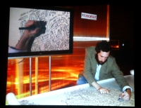 Opera Giovanni De GaraLa "pesantezza" delle piccole cose – Daniela Novello, diplomatasi a Brera in pittura, da sei anni si occupa di scultura in marmo. Le opere che ha presentato fanno parte di una raccolta da lei intitolata "archeologia del contemporaneo", poiché rappresentano oggetti della nostra quotidianità, e quindi contemporanei, scolpiti in marmo, materiale che rimanda all'archeologia. Daniela per queste opere che rappresentano spugne da cucina, gessetti, barattoli di china, cartoni del latte, ha utilizzato diversi tipi di marmi e pietre compiendo una ricerca precisa del materiale che più si avvicinava alla natura e alla cromia degli oggetti rappresentati. Angela Orsini sottolinea la "grande abilità che porta ad effetti illusionistici sorprendenti".