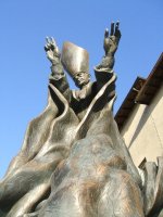 Paolo VI – F. BodiniNessun mistero dunque; nessuna lettura dietrologica. "Solo un fatto pratico", conferma la Marrazzi. "Originariamente la statua doveva essere mostrata ai fedeli svestita e il bimbo aveva due braccia. E' solo nel corso del XVII, quando probabilmente venne coperta del manto prezioso, con tracce di oro e argento, come siamo abituati a vederla, che si è sentita l'esigenza di aggiungere il terzo braccio, visibilmente diverso, dagli altri due, più esile e applicato con una vite". Sotto il manto, in pratica, l'effetto sarebbe stato quello di vedere un bambino monco dell'arto.