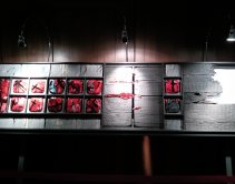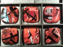 Questa forte carica evocativa e simbolica, quasi una sorta di liberazione della materia dalla materia, è ben presente in "Scavi", un'opera composita in legno grezzo e vetro fuso. Sull'ampio pannello orizzontale, lungo 270 centimetri e alto 55, si possono ripercorrere le tappe della Passione di Cristo, raffigurate su formelle smaltate dominate da un rosso brillante e sanguigno, e ossessionate dalle nere sagome della croce che si ripetono una stazione dopo l'altra, con un crescendo di drammaticità.