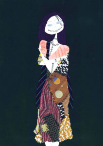 Simone Macciocchi ha realizzato “A tribute to Tim Burton ”, il Natale “sottosopra” della meravigliosa favola gotica “A nightmare before Christmas” . – “Il lavoro si compone di 6 tavole originali (pezzi unici): i tre personaggi principali, Jack, Sally e Zero, e sei scene liberamente tratte dal film “Nightmare Before Christmas”. Utilizzando collage e cucito per le illustrazioni principali, i personaggi diventano tangibili e materici, come fossero marionette e pupazzi veri. Nel film Sally si cuce, e così – nella tavola – diviene un po’ sposa cadavere; Jack spaventapasseri oltre che scheletro, e Zero un fantasma-lenzuolo. Anche nelle tavole su cartongraf, il disegno si fa più materico, giocato solo su bianchi e neri.”