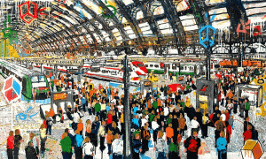 bani o in stazioni ferroviarie animate da una folla dai contorni indefiniti, in perenne movimento. Luoghi – non luoghi di percorrenza accelerata e frenetica come le mete turistiche, i monumenti e i centri storici, le infrastrutture per trasporti sono i principali riferimenti su cui si focalizza la sua indagine. Come in uno sciame urbano, in cui nella massa indistinta è l’identità del singolo a venire meno.