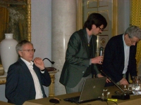 Tavolo dei relatoriL'uomo e il paesaggio – L'incontro si è aperto immagini scelte dall'immenso repertorio che la storia dell'arte moderna offre in merito al rapporto tra l'uomo e la natura; in particolare nell'operato di pittori quali William Turner e Caspar David Friedrich, l'individuo si trova in dialogo diretto con la potenza e l'enormità delle montagne, del cielo e del mare. A sottolineare l'ambiente a lui familiare e con cui più volte si è confrontato anche in ambito professionale Valentin Bearth ha affrontato il tema dello spazio, del suo studio e della sua progettazione proprio osservando le montagne. Architetto grigionese laureatosi al politecnico di Zurigo, Bearth insegna dal 2000 all'Accademia di Mendrisio e dal 2007 è il direttore.