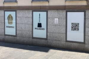 Da qualche giorno sei vetrine si sono trasformate in cortocircuiti semantici a cielo aperto. Non semplici installazioni, ma “equazioni visive” che giocano con l’iconografia dell’arte, ribaltando le gerarchie tra alto e basso, genio e quotidiano, icona e oggetto. Un gesto poetico e filosofico che non dileggia ma rovescia, non dissacra ma interroga.