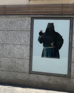 A chiudere il percorso, Carlo Buzzi si mette in scena in abiti da frate, evocando volutamente Padre Pio. Un autoritratto ironico e dissonante: l’artista si fa “santo laico”, officiando un rito laico e ambiguo, testimone di un’arte che non consola ma destabilizza.