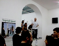 Evento- foto di E.BeluffiUna lotteria-pesca per un catalogo – Per una realtà artistica che sin dalle sue origini ha messo in discussione i codici tradizionali e che non intende presentarsi come semplice gruppo o normale movimento artistico, la ricerca di un finanziamento non poteva avvenire certo in maniera banale o canonica: e così, i Vegetali Ignoti, che da quindici anni, su idea di Luca Scarabelli e Riccardo Paracchini, accolgono artisti e personaggi di ambiti diversi per promuovere un'arte libera e senza canoni restrittivi, hanno pensato ad un canale di finanziamento davvero originale per coprire le spese di stampa del loro catalogo, ad una forma di found raising innovativa e creativa, che Luca Scarabelli ha definito "una sorta di pesca, proprio come quelle dell'oratorio".