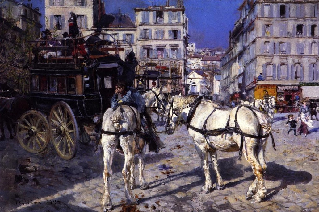Alla mostra novarese sono proprio loro i protagonisti per numero e qualità di opere, anche con autentici capolavori come Westminster (nella foto), memoria del soggiorno londinese di De Nittis, o la Place d’Anvers di Zandò o ancora l’Omnibus à Place Clichy di Boldini che non si stancherebbe mai di ammirare.