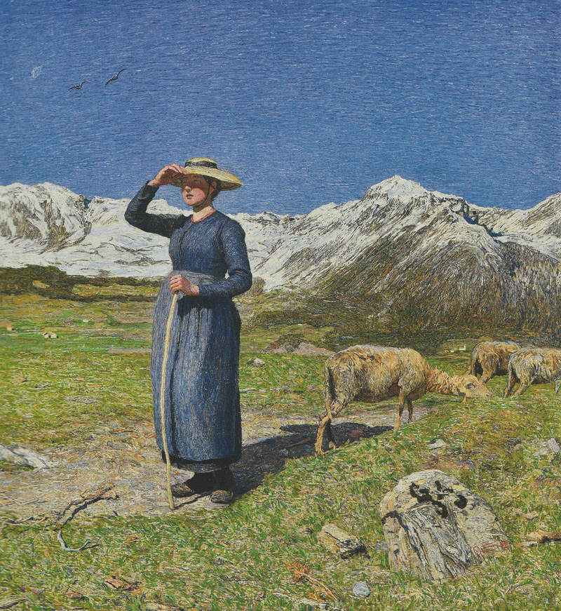 L’ultima sezione è riservata al paesaggio nel divisionismo: il confronto fra due tele di soggetto identico – Nebbia domenicale – dipinte però a venticinque anni di distanza da Angelo Morbelli farà bene intendere l’elaborazione compiuta dall’artista alessandrino nell’analisi naturalistica e nella ricerca della luce. Di Pelizza c’è La Clementina, una tela raffigurante una cascina appena fuori Volpedo, esposta per la prima e ultima volta alla Biennale del 1909, un quadro che se non fosse divisionista potrebbe essere di Fontanesi. E poi ancora Segantini che coinvolge, non solo con l’Amore alle fonti della vita commissionato dal principe russo Felikx Yussupov (quello del complotto contro Rasputin), intriso di idealità più o meno letteraria e spirituale, ma anche, e soprattutto, con Mezzogiorno sulle Alpi, prestito generoso della Fondazione Otto Fischbacher-Giovanni Segantini di Sankt Moritz. È un’opera che non si stanca mai di ammirare e tutti si vorrebbe essere lì, al posto della Baba, immersi in quella silenziosa e misteriosa vastità che nemmeno le montagne coperte di neve abbagliante riescono ad arginare.