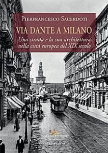 titolo Via Dante a Milano, Una strada e la sua architettura nella città europea del XIX secolo. Ne è autore Pierfrancesco Sacerdoti, uno studioso particolarmente attento all’architettura del tardo Ottocento e del primo Novecento come anche ha dimostrato, e nel migliore dei modi, trattando dei rapporti e delle influenze fra Silvio Gambini e il liberty milanese nel convegno Busto in liberty svoltosi nel 2019 a Palazzo Marliani, Cicogna. Con meticolosità e competenza davvero esemplari, riservate non solo ai decori delle fronti, ma anche alle strutture e alla disposizione degli spazi interni, Pierfrancesco Sacerdoti ha indagato sulle ragioni e sulle scelte del rinnovamento radicale, anche a costo di demolizioni di palazzi nobiliari, dell’area tra il Castello Sforzesco e il Duomo comprendente anche lo slargo ellittico del Cordusio. Tutto incominciò a seguito del piano regolatore dell’ingegnere Cesare Beruto del 1884: si incominciò nel 1887 con la presentazione dei primi progetti degli edifici; nel 1892, con incredibile celerità dei cantieri, l’ultimo palazzo della via, dal 1891 intitolata a Dante Alighieri, era ultimato.