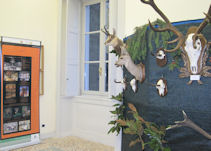 L'allestimento dell'esposizionedidattico che, prendendo le mosse dalla caccia di 7000 anni fa, giunge ad illustrare anche i moderni metodi di censimento e di prelievo della fauna. Un pannello intero, ad esempio, è dedicato ai trofei (orgoglio collezionistico di ogni cacciatore), un altro alla storia dei roccoli, strutture per l'uccellagione mimetizzate da specie arboree e arbustive adatte e funzionali anche allo studio dell'ornitologia. "Un'iniziativa – ha tenuto a precisare Lucina Caramella – con chiaro e forte intento storico ed educativo". Anche Specchiarelli ha ribadito: "Così come oggi, anche per il passato l'ambiente varesino risulta essere estremamente vario dal punto di vista delle specie arboree ed animali presenti. L'obiettivo è principalmente di conoscenza territoriale, non certo di formazione degli schieramenti pro o contro la caccia". Un percorso che potrebbe concretizzarsi, in futuro e nei desiderata degli organizzatori, nella costruzione di diorama tematici sulla caccia, ossia di ambientazioni artificiali e in scala che ricreano scene, paesaggi e fauna di vario genere.