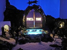 Un Presepe animato, e molto simbolico. Al centro del Presepe è situata la grotta, la quale è però inizialmente chiusa da un portone in rame, sul quale si trova stampigliata la scritta latina "Porta Fidei". Dopodichè le luci calano, lentamente l'atmosfera imbrunisce e si fa notte, ed è allora che la scritta si accende e s'illumina. E poi, sempre nell'oscurità della notte – che rappresenta
